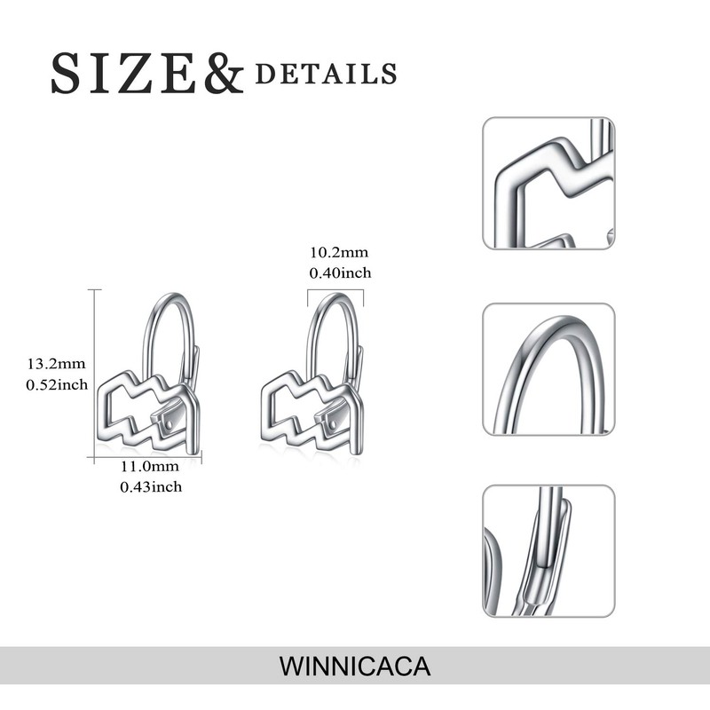 - ♥Material & Size♥: Aquarius Earrings Size (Pierced): 0.6*0.33 inch. Made of real 925 Sterling Silver, this zodiac jewelry is Lead-Free, Nickel-Free & hypoallergenic to wear. This Sterling Silver Aquarius earrings special design is born to match the clothes and your unique beauty.