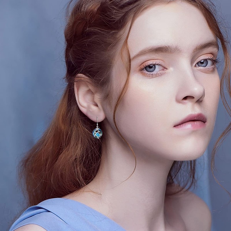 WINNICACA Turtle Earrings 925 Sterling Silver Sea Turtle Earrings with Blue Circle Crystal Dangle Earrings Animal Jewelry Gifts For Women Girls Birthday