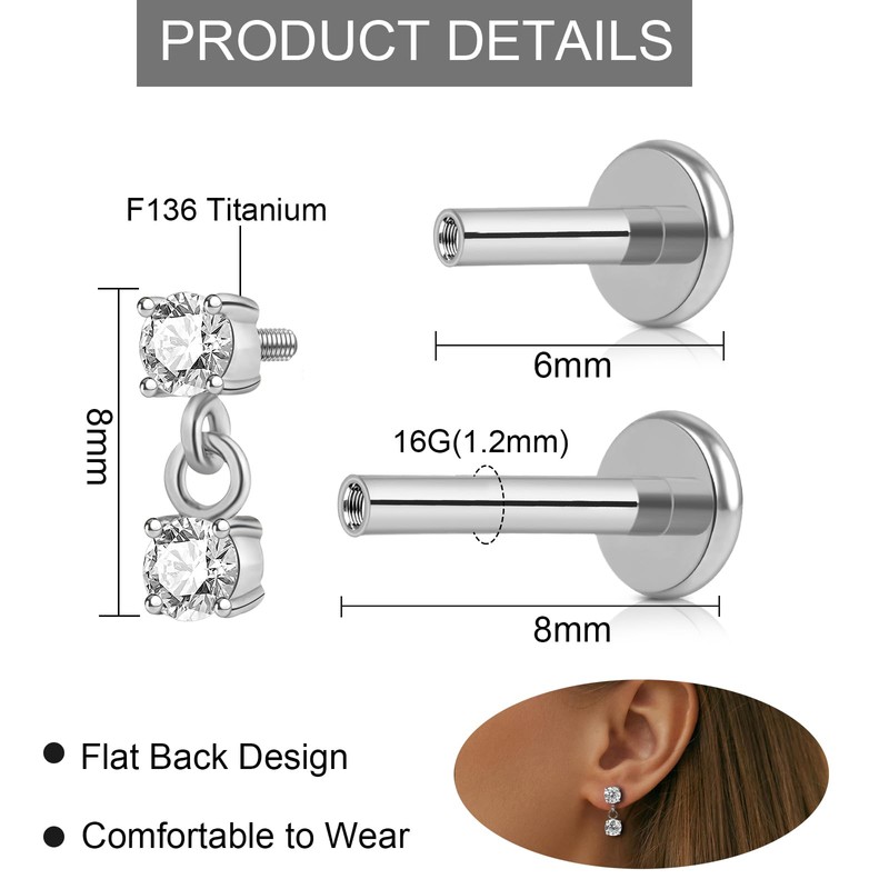 - 【Earring Set】: This piercing jewelry set comes with 2 piercing posts in varying lengths (6mm and 8mm) and 1 forward piercing top. Flat back earrings can be used as stud cartilage earrings, helix earrings, conch piercing jewelry, tragus earrings, threadless nose studs, lip studs, or medusa piercing jewelry.