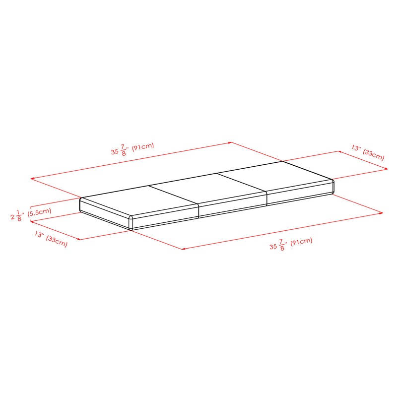 - The cushion size is 35.83"W x 12.99"D x 2.17"H and comes fully stuffed with foam for your comfort.