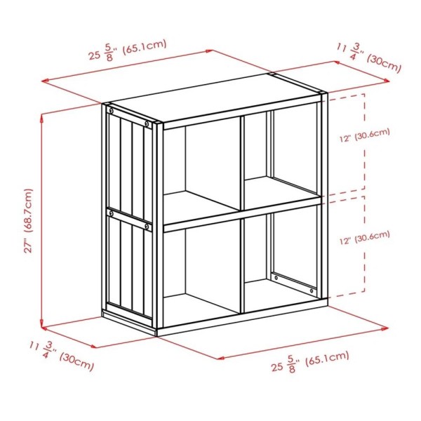 • Shelf has 4 cube sections.