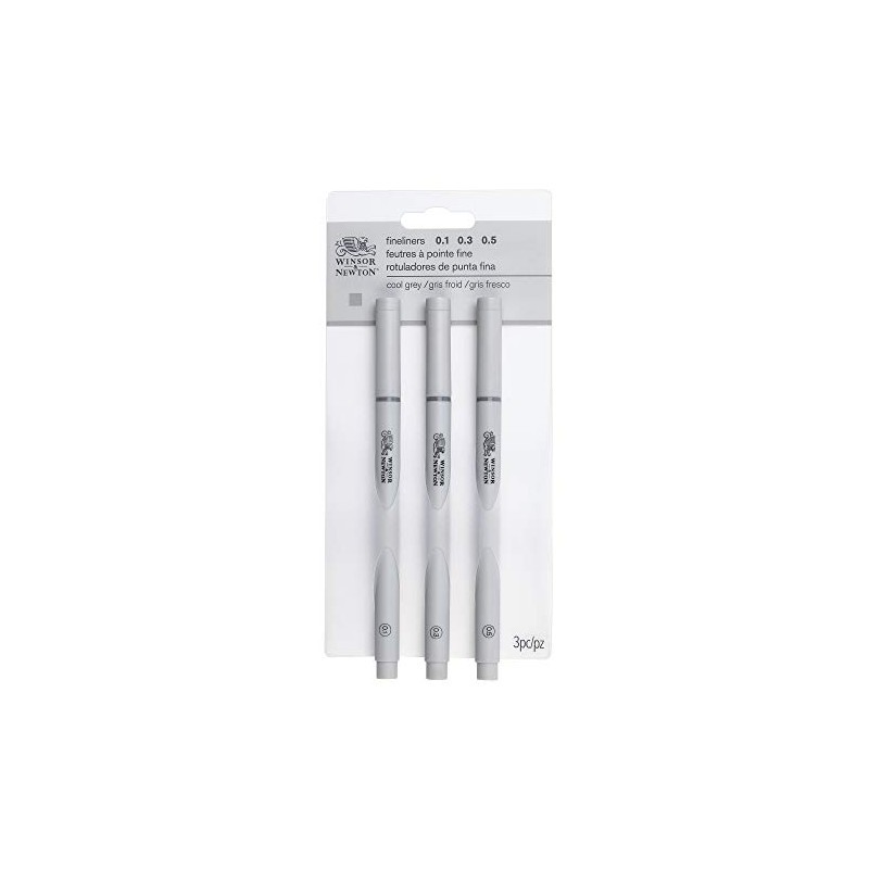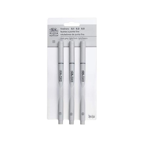 Winsor & Newton Fineliner Fine Point Pen Set, Assorted, Set of 3, Cool Grey
