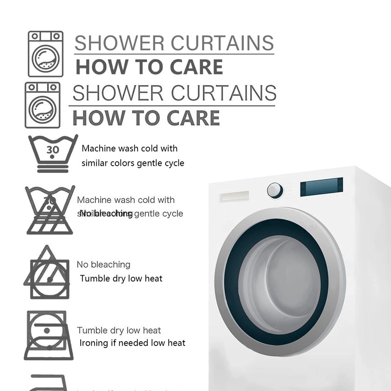 Cleaning this shower curtain is a breeze. Simply toss it in the washing machine on a gentle cycle and tumble dry on low. The fabric is quick-drying, so you can hang it back up in no time.