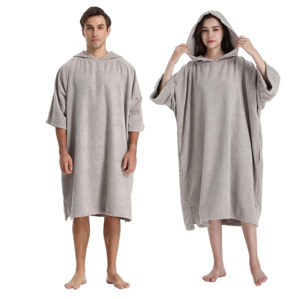 Winthome Changing Bath Robe, Surf Poncho Towel with hooded (M, Light Grey)