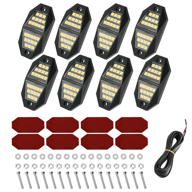 Winunite 8 Pods White Rock Lights Pure White 210 Degrees Wide Angle Underglow Lights with Extension Wires, IP67 Waterproof Fender Lights for Trailer Off Road Truck ATV UTV SUV Motorcycle