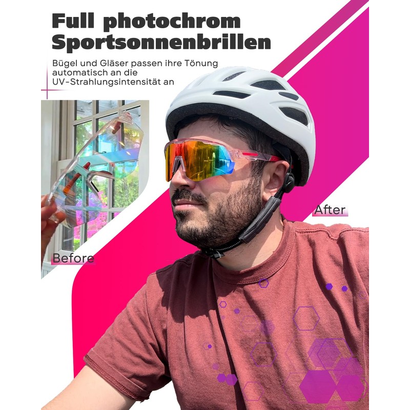 Diese selbsttönende Sport-Sonnenbrille bietet optimalen Schutz und Leistung für Outdoor-Aktivitäten.