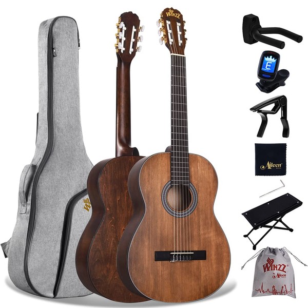 - 【Ideal Guitar Set】Winzz 39 inch full length nylon string classic guitar 4/4 set is suitable for adult students beginners or experienced players. Perfect for lessons, concerts, group rehearsals, stage performances or practice at home.