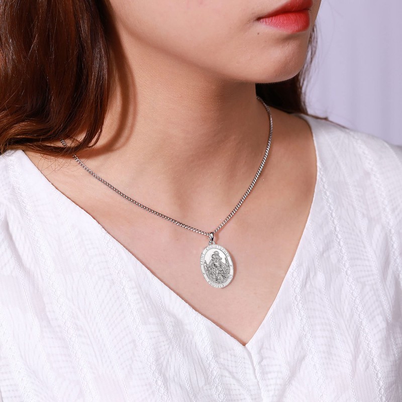 - 💕Size of this religious medal pendant is 20*28mm (0.78*1.10inch), with a 60cm (23.6inch) s925 silver curb chain, which suits both men and women, match everyday wear and different styles, express faith and protection of journey through life.