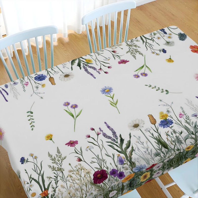 Wipe Clean Rectangular Tablecloth 60 x 102 Inches (150 x 260 cm) Garden Tablecloth with Flower Collection Motif, Decorative Table Decoration for Kitchen Dining Room Tablecloth Outdoor Weatherproof