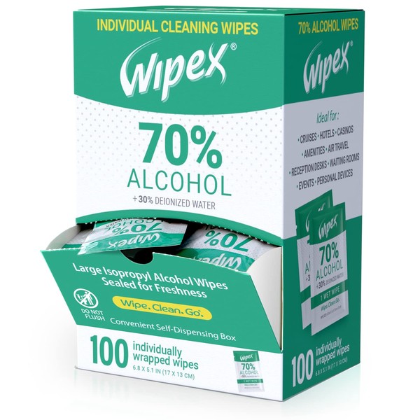 Wipex 70% Isopropyl Alcohol Wipes Individually Wrapped Sachets, Large Electronic wipes in Dispensing Box, Alcohol Prep Wipes, Screen Wipes for Electronics & Gadgets, Towelette Tech Wipes for Sanitizing, Travel Size, 100 Count (Pack of 1)