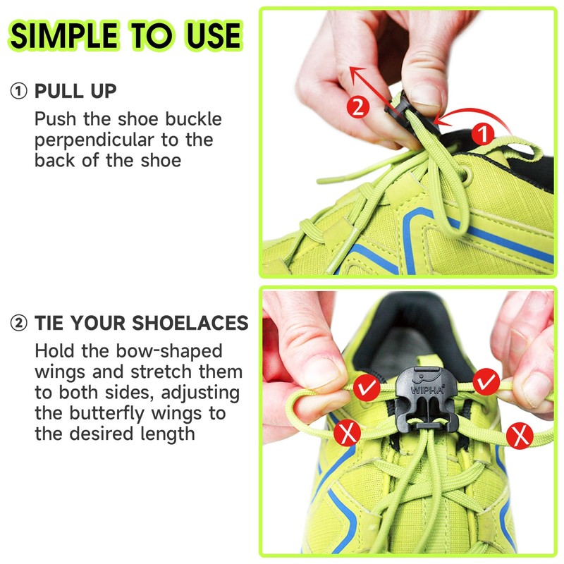 - Patented Design - Our WIPHA shoelace buckle adopts a small hole design to fit the original laces of all shoes, making it easy to install and use. The fastener eliminates the worry of loose shoelaces and solves the problem of shoelaces falling off when walking. The shoelaces will not fall off even if anyone steps on them