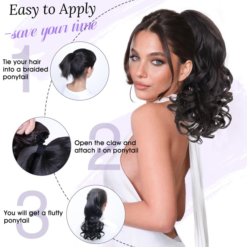 - [Easy to Wear and Care]:Our ponytail hair extensions are designed with claw clips, which are scratch-resistant and non-slip, and are stable to wear. Simply open the clip on the top of the ponytail and clip the ponytail hair extensions on your hair or ponytail. To prevent tangling, after opening the package, spray some water on the ponytail and gently shake it up and down to restore its full and natural curl.