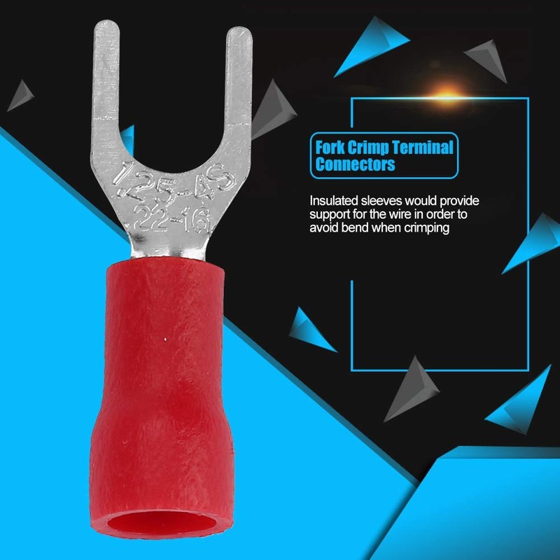 Wire Connectors 250pcs Insulated Electrical Wire Terminals Crimp Fork Connector Set for Electric Power Equipment and Home Appliance(Red)