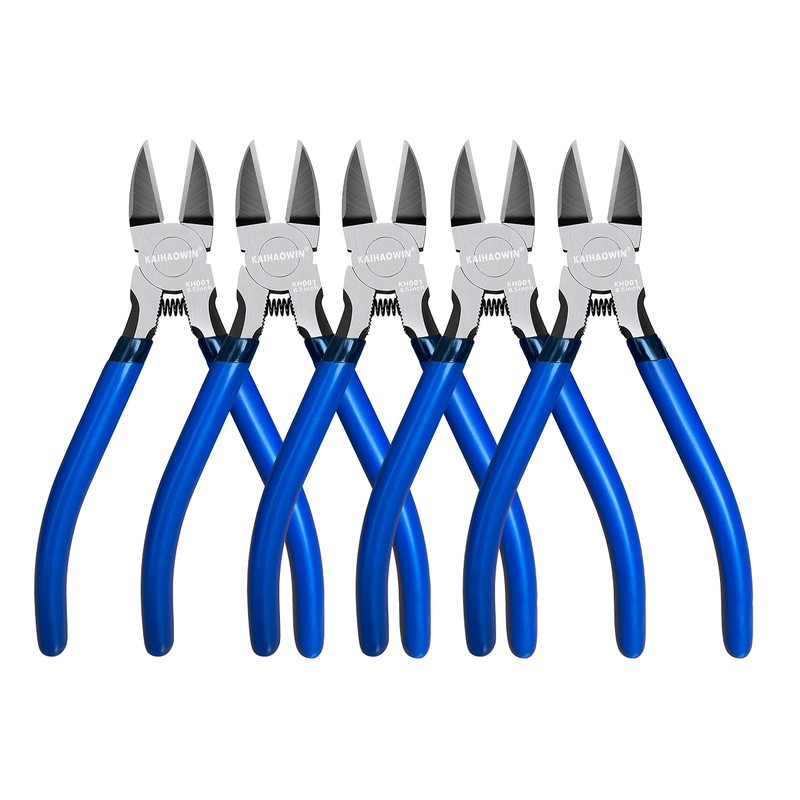 Wire Cutters 5 Pack, 6.5 inch,KAIHAOWIN Flush Cutters Diagonal Cutters Side Cutters Precision Ultra Sharp Spring Loaded Wire Snips Clippers Dikes Cutting Pliers Small for Crafting Jewelry Making,Blue