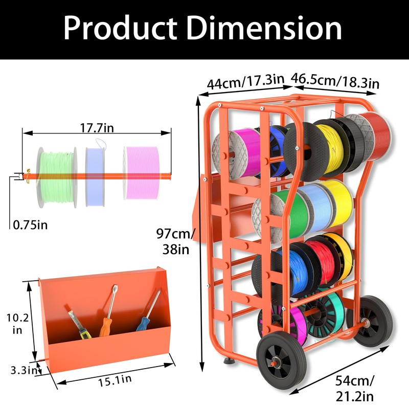 • EASY TO USE: MOOFI Wire rack quick to assemble or disassemble with the instructions. Our wire spool rack easy to add or remove axle and storage tray for quick replenishes or replace of the spools.