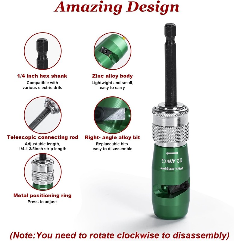 - 【Easy to Use】Simply attach the wire stripper tool to your electric drill for quick and effortless wire stripping. Adjustable for wire lengths ranging from 0-1.9INCH. Wire Twister can efficiently and quickly twist two or more wires together. Making it a must-have tool for professional electricians and enthusiasts alike.