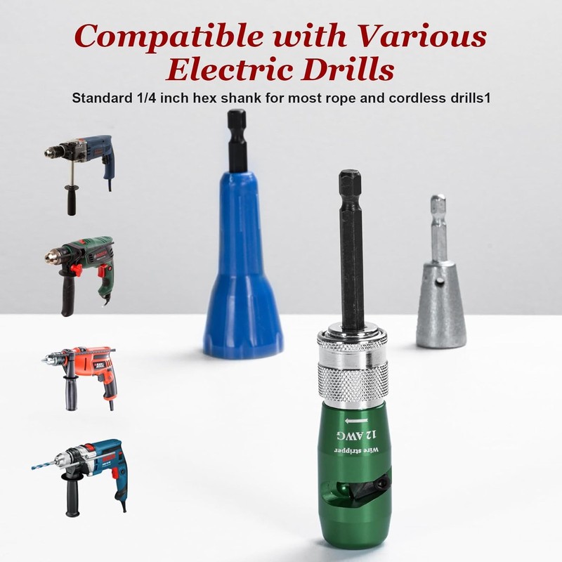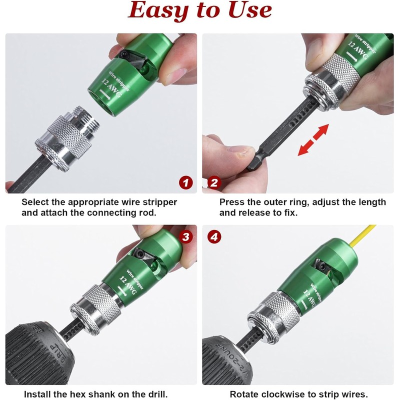 - 【Wide Application】 Both the wire stripper and the wire joiner are made of 1/4" hexagonal shank, which is suitable for most electric drills. Satisfy daily stranding needs, used in household stranding, factory connecting wires, stranding wires and other scenarios.
