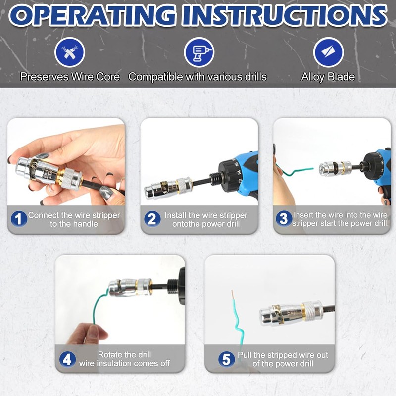 - Premium Materials: This electrical wire stripper is made of high-quality aluminum alloy and refined through a high-temperature extraction process. It has the characteristics of high hardness, strong wear resistance, and excellent heat resistance. The Drill Wire Stripper is a sturdy and reliable tool for your wire stripping needs.