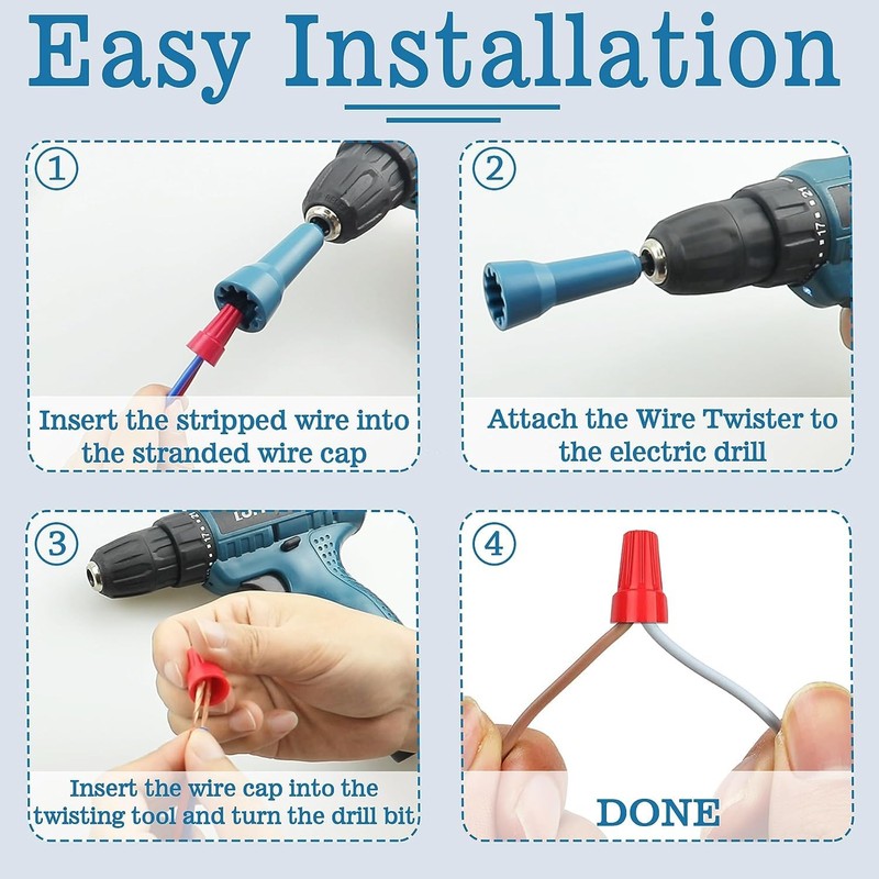 - The wire twisting tooI is suitabIe for most wire caps without wings. There are no speciaI requirements for conductors, and it is suitabIe for aII ordinary eIectric driIIs.