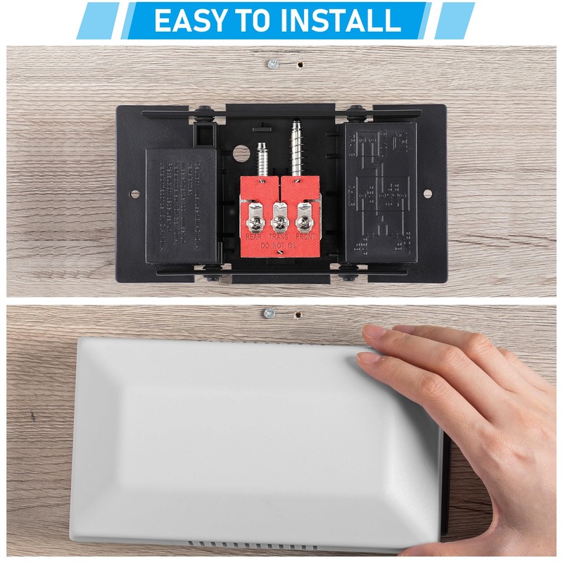 - Easy to Install: there are three ports in the base; Connect the "TRANS" to a 16V 10VA transformer, connect the "FRONT" TO front doorbell button and connect the "REAR" TO rear doorbell button