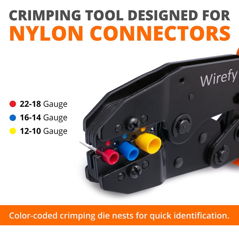 Wirefy Crimping Tool For Insulated Electrical Connectors - Ratcheting Wire Crimper - Crimping Pliers - Ratchet Terminal Crimper - Wire Crimp Tool 22-10 AWG