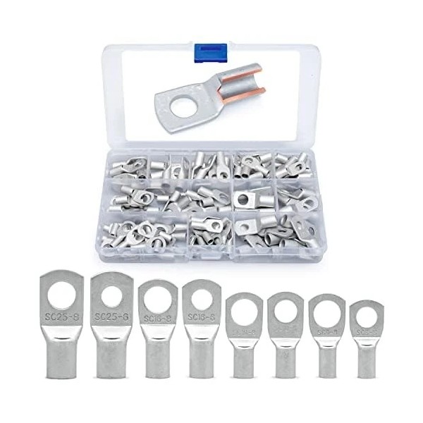 Wirefy Tinned Copper Wire Lugs Kit - Battery Lugs - Crimp Battery Cable Ends ...