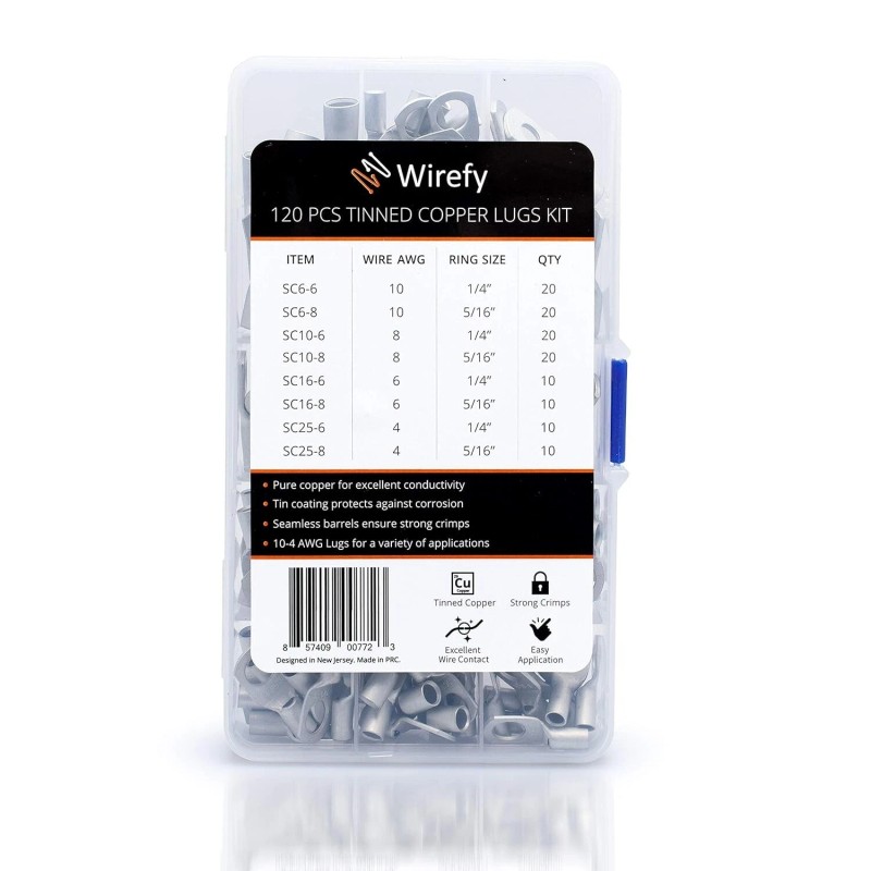 Wirefy Tinned Copper Wire Lugs Kit - Battery Lugs - Crimp Battery Cable Ends - 120 PCS