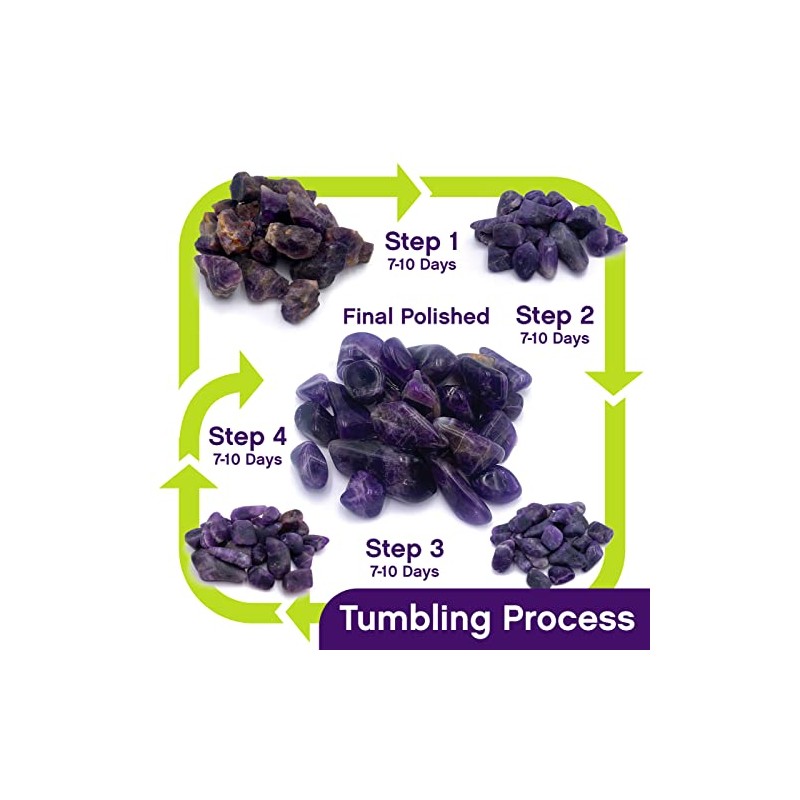 *Kit is designed for 3 Lbs barrels, but works with any rock tumbler. For tumblers with smaller barrel sizes only use 1/2 of the packet.