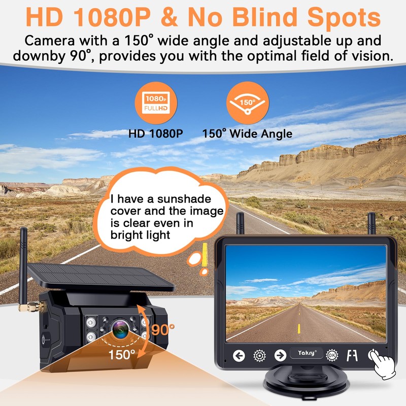 - USB and Solar Powered: Wireless trailer camera is equipped with a large 15000mAh rechargeable battery that can be used for 25 hours on a full charge, making it perfect for short or long trips. When the wireless back up camera systems for car battery is low or there is not enough sunlight, it is also a good choice to charge it with the included USB charger.