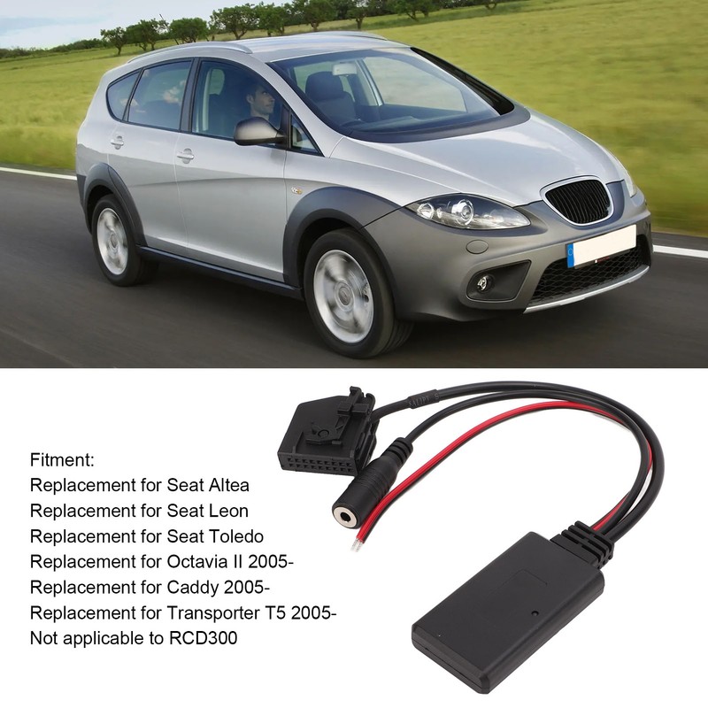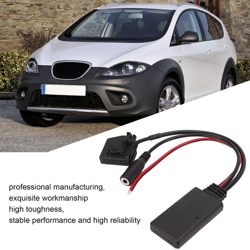 1、Fitment: Wireless audio cable is replacement for Seat Altea Leon Toledo, replacement for Octavia II, replacement for Caddy Transporter T5. 2、Bluetooth: Radio aux cable supports efficient music transmission, you can hear music from your phone, pad or mp3 which has blueooth function. 3、Hands Free: If the call comes, you can use the phone to answer the call, the sound effect is clear, support bluetooth microphone hands free. 4、Excellent Performance: Professional manufacturing, exquisite workmanship, high toughness, stable performance and high reliability. 5、Simple Installation: The installation is simple, just plug and play, red wire connected to 12V+, black wire connected to 12V‑, convenient for using.