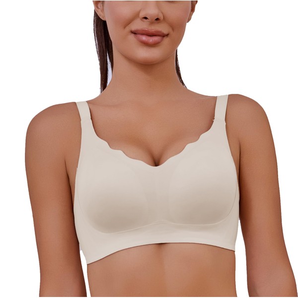 Wireless Bra for Women Push Up Smooth Bras Seamless Comfortable Soft Bralattes Supportive T Shirt Full Coverage Light_Yellow 2XL