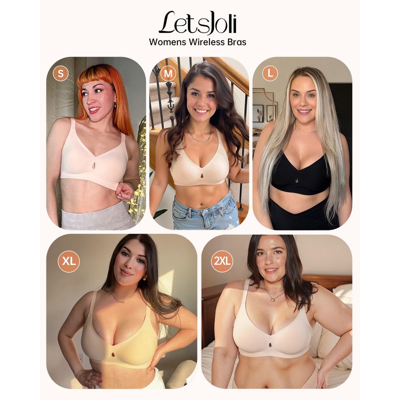 - 【Breathable Hollow Water Drop Design】Delicate water drop cutouts combine breathability and elegance in LetsJoli wireless bra, creating a comfortable experience while enhancing comfort and fit. The breathable hollow cutouts enhance airflow, keeping you cool and dry during extended wear and improving overall comfort.