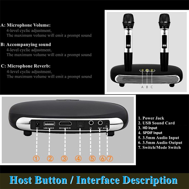Wireless BT Karaoke Set with Double Wireless BT Microphone for TV Set Top Box Computer Smart Phone Black Karaoke Box