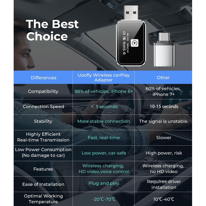 ๐ใ๐๐ง๐ฌ๐ญ๐๐ง๐ญ ๐๐ฅ๐ฎ๐ & ๐๐ฅ๐๐ฒ ๐๐๐ญ๐ฎ๐ฉใ No apps or drivers needed. Simply plug into your factory CarPlay USB port and pair with your iPhone. The adapter auto-connects every time you start your car.