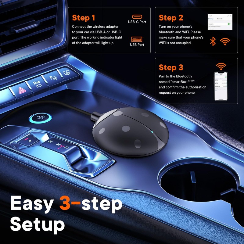 - Simplified installation - 1 additional alloy dongle saves you the trouble of selecting the right wireless adapter for factory wired carplay. It only takes 3 steps to connect your carplay and smart devices and start a safe and pleasant driving experience. Apple carplay wireless adapter save your time by quick automatic reconnection.