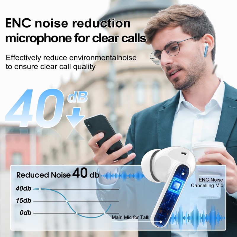 Wireless Earbuds, Bluetooth 5.3 Headphones In Ear with 4 ENC Noise Cancelling Mic, 40H Playtime Bluetooth Earphones, Mini Deep Bass Stereo Ear Buds, IP7 Waterproof Wireless Headphones, LED Display