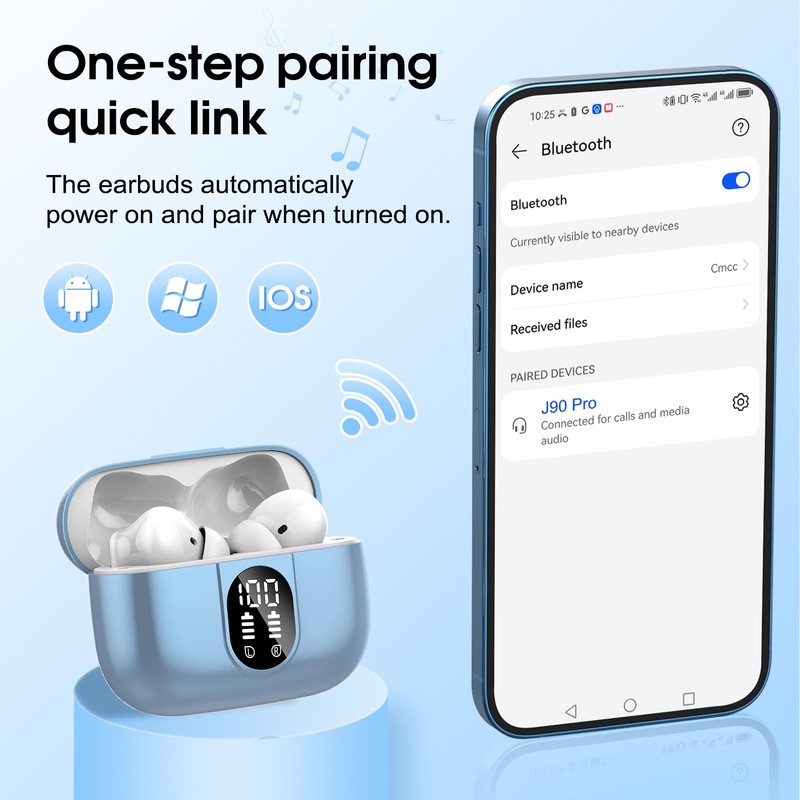 • Enhanced Bluetooth 5.3 and Easy Pairing: J90 Pro wireless earbuds feature the latest Bluetooth 5.3 chipset, offering an 80% increase in connection speed and more stable signal with low latency of 50ms. Perfect for gaming, calls, and sports, they provide up to 33ft of range and automatically connect to the last paired device when the charging case lid is opened.