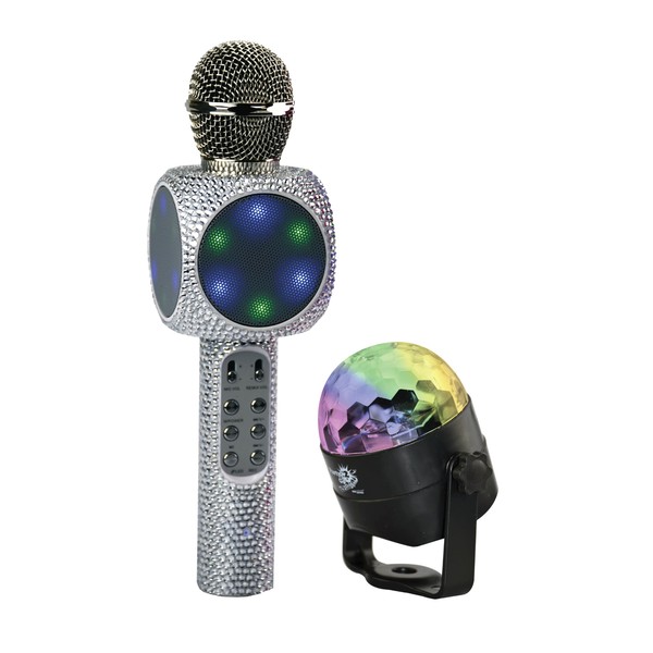 Wireless Express - Sing-Along Bling Bluetooth Karaoke Microphone and Bluetooth Stereo Speaker All-in-One (Silver Bling w/Disco Ball)