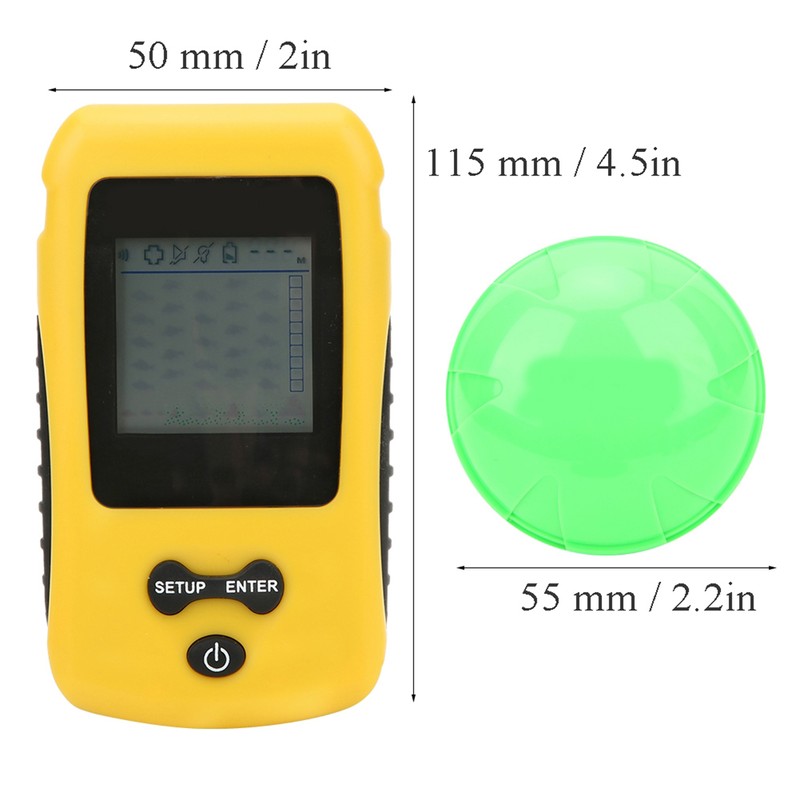 1、Wireless sonar sensor design, convenient and practical. 2、Lightweight and portable, easy to carry and store. 3、With display screen, can clearly view the depth of the fish. 4、The depth of the water detection is about 0.6‑50m, large detect area. 5、Wonderful fish finder for fishig lover.