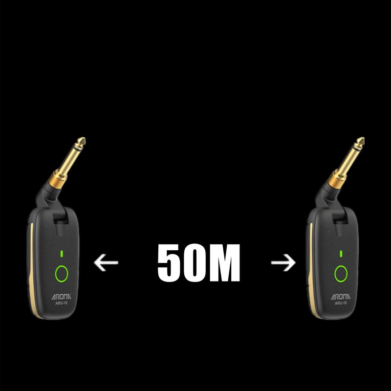 - 2.4ghz Uncompressed Signal:This wireless guitar system is 2.4GHz ISM frequency band,less than 5ms latency,low noise,low latency,more than 100 feet effective range.You are afforded the freedom to roam the stage for a truly dynamic performance