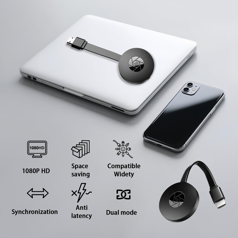 - Stable connection: the HDMI dongle ensures lag-free streaming thanks to the strong 2.4GHz signal. Ideal for quickly mirroring videos, presentations or games to TV or projector without interruption