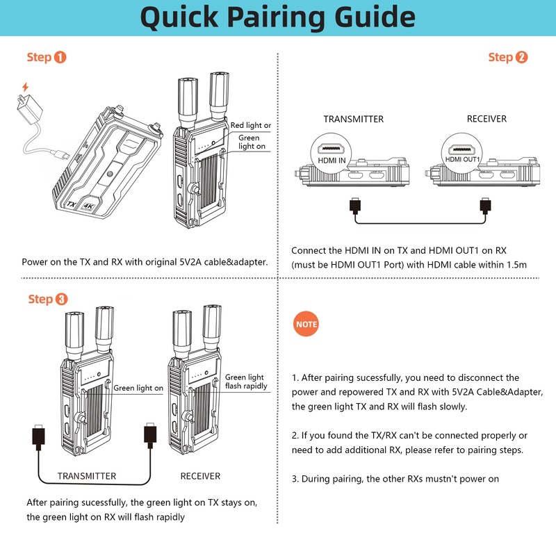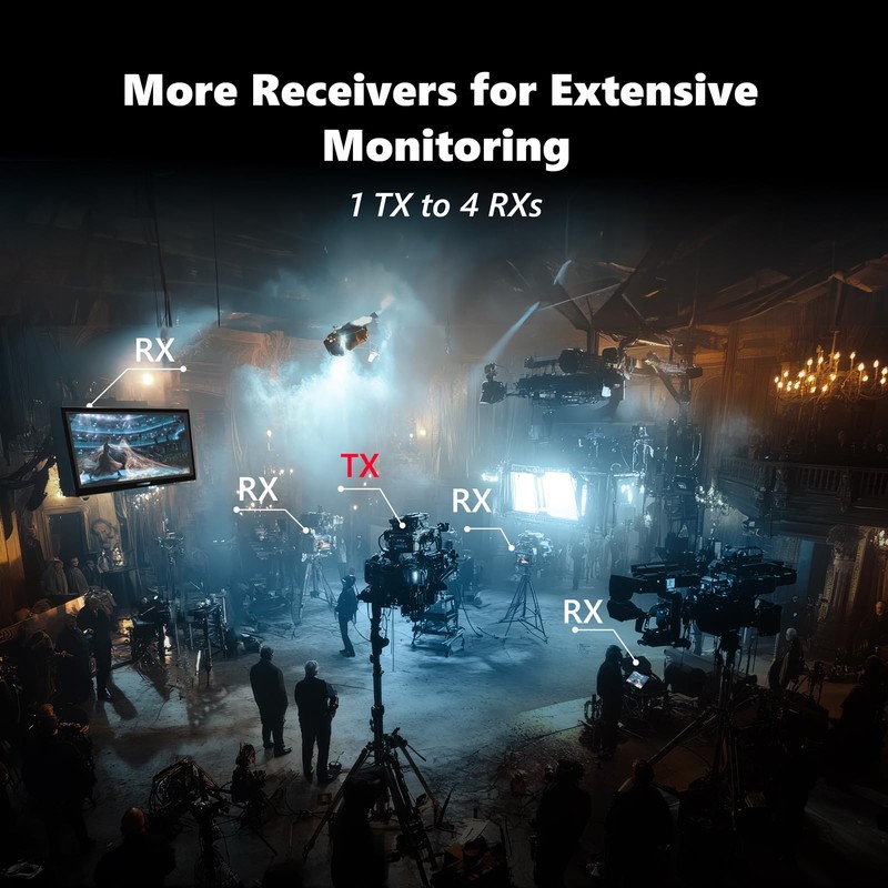 - 【Support Up to 1TX to 4RXs】With the Wireless Video Transmitter and Receiver, allows you have up to four receivers bound to one transmitter. As RX increase, the wireless transmission distance will be shortened