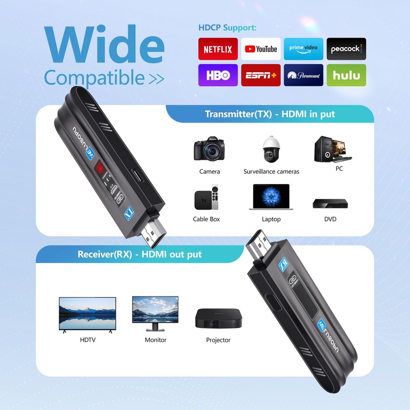 The Wireless HDMI Transmitter allows you to stream HD content wirelessly from your computer, laptop, or camcorder to your HDTV, monitor, or projector. It's perfect for presentations, training sessions, or home entertainment.