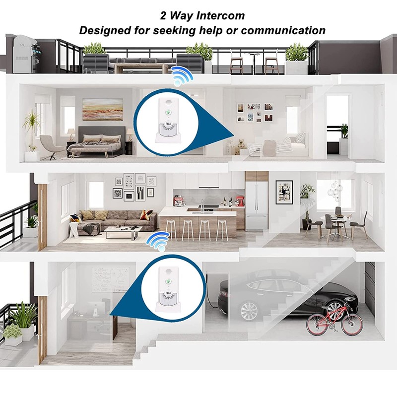 Wireless Home Intercom System for Elderly, Two Way Talk Communication Caregiver Pager, Nurse Calling Home Intercom System for Patient Senior Disabled Pregnant (White)