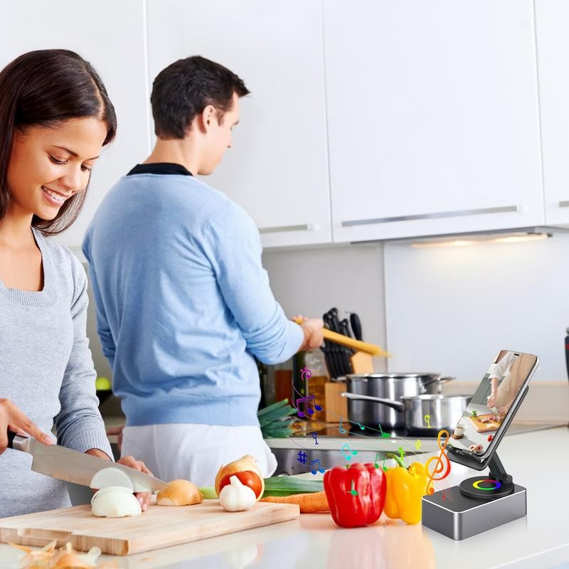 - Wireless Induction Audio Bluetooth Speaker: A multifunctional device that combines wireless induction, bluetooth speaker, charging, cell Phone Stand, and ambient light, with a built-in 4Ω5W power speaker that delivers high-definition stereo surround sound at any volume level for an enhanced audio experience