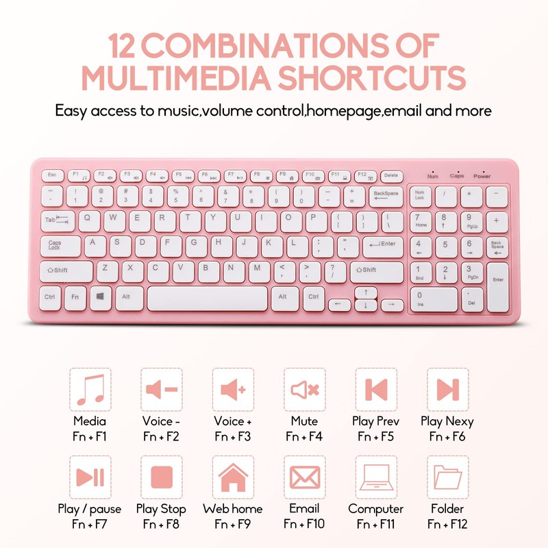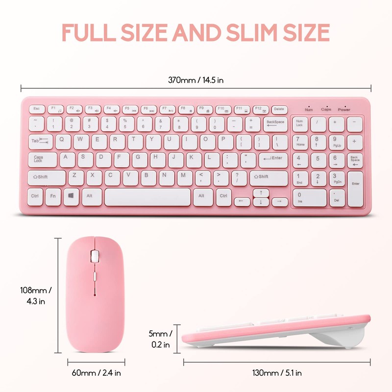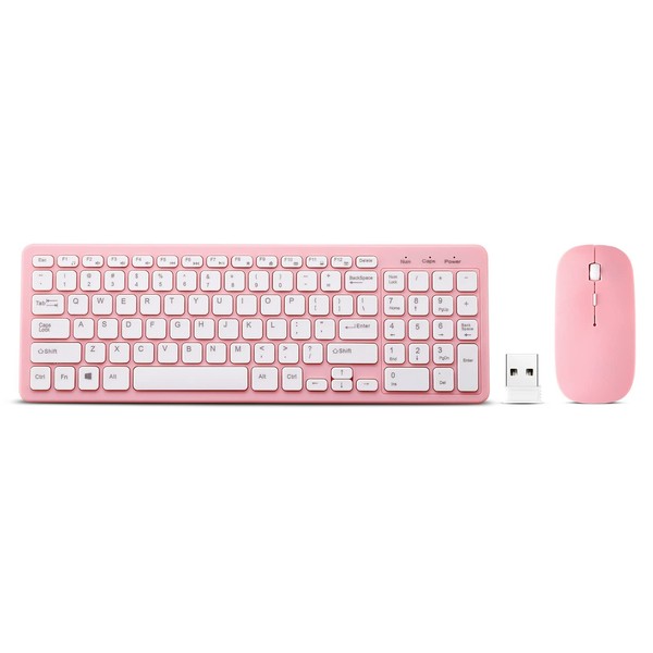 Wireless Keyboard and Mouse Combo, Compact Quiet Wireless Keyboard and Mouse Set 2.4G Ultra-Thin Sleek Design for Windows, Computer, Desktop, PC, Notebook, Laptop (Pink)