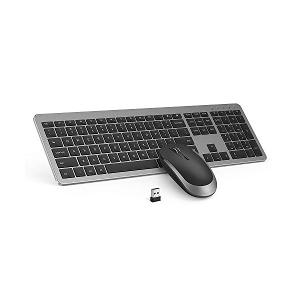 Wireless Keyboard and Mouse Combo - Full Size Slim Thin Wireless Keyboard Mouse with Numeric Keypad 2.4G Stable Connection Adjustable DPI (Grey & Black)