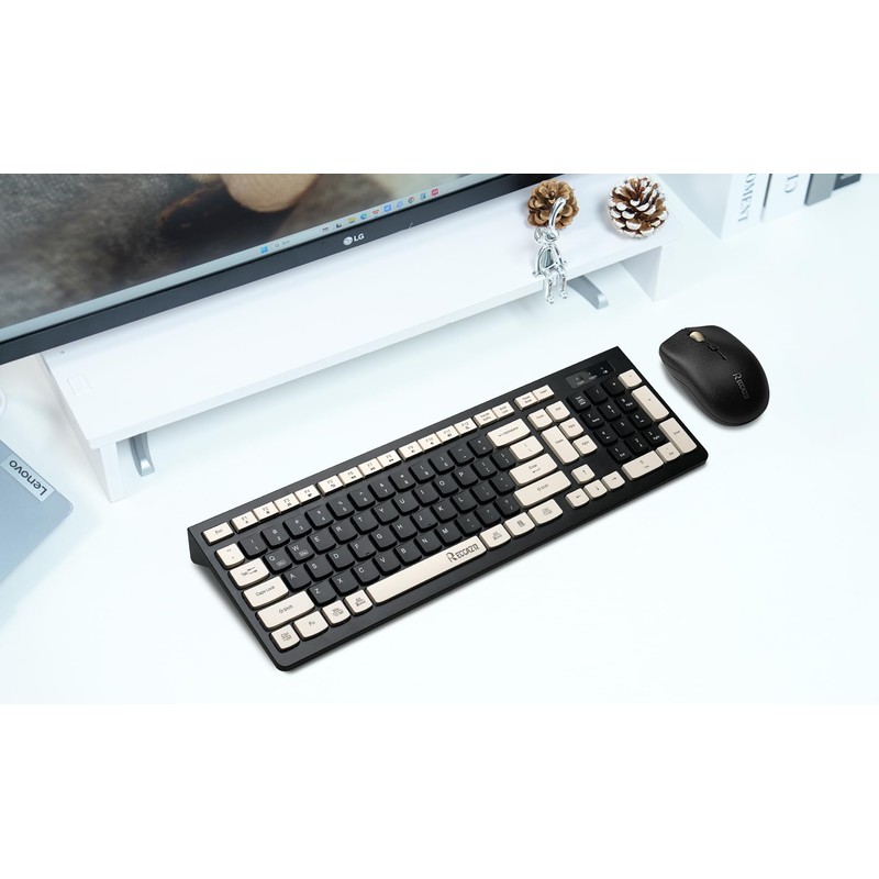 Wireless Keyboard and Mouse Combo, Reccazr 2.4G Full-Sized Keyboard and Mouse Cordless, 3 DPI Adjustable Mouse, Dual-System Keyboard for Computer/Laptop/Windows/Mac (Black & Cream)