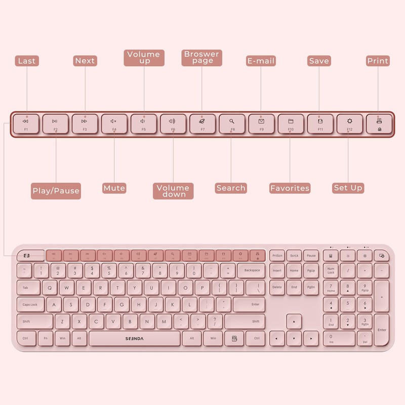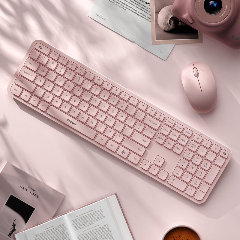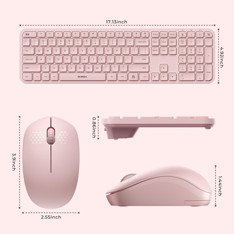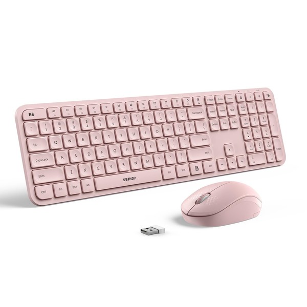 Wireless Keyboard and Mouse Combo - seenda Full Size 2.4G USB Wireless Keyboard Mouse Set, Quiet Cordless Computer Keyboard Mouse for Windows, Laptop, PC - Pink