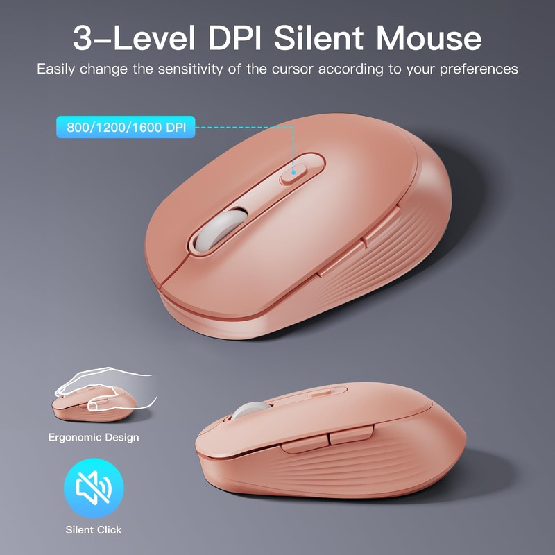 • Wireless mouse has 3-level DPI (800/1200/1600) and 6 buttons, you can choose your favorite cursor movement speed through click the DPI button to meet your different needs in terms of sensitivity.